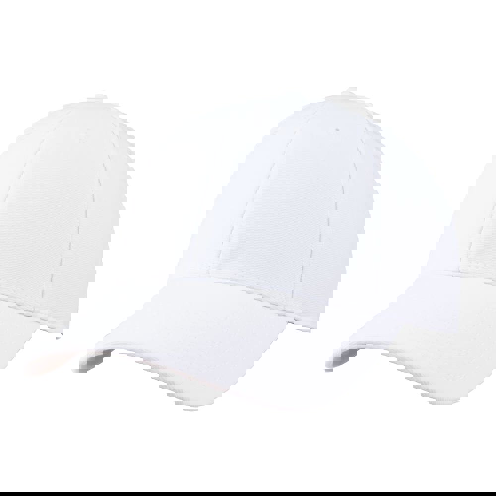 6 Panel Sport Cap mit Frontfütterung. Medium profile. Mattschwarzer offener Metallschnallenverschluss. Ausgeführt in ottoman Polyester
