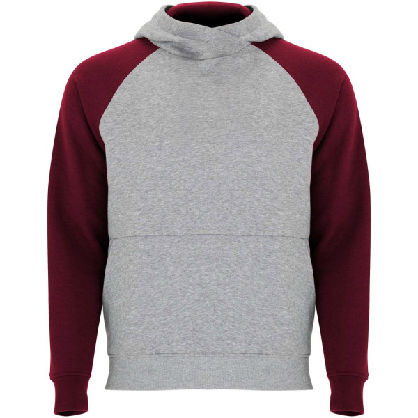 Zweifarbiger Unisex Kapuzenpulli. Kapuze mit gekreuztem Kragen und Metallösen. Innenkapuze, Kordelzug und Raglanärmel in Kontrastfarbe. Kängurutasche. Bündchen und Saum aus elastischem 1×1-Rippstrick. Abnehmbares Etikett.