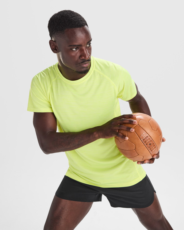Atmungsaktives Funktions-T-Shirt mit Ranglanärmeln. Seitenteile mit Anti-Reibungsnähten. Ton-in-Ton-Rundhalsausschnitt und Nackenband.