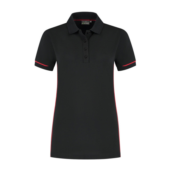 Poloshirt mit Kontrastpaspelierung, 50 % recyceltes rPET-Polyester / 48 % Bio-Baumwolle / 2 % Elasthan, 210 g/m² (GRS-zertifiziert), Piqué, ladies fit, 1x1-Rippbündchen mit Kontrastpaspelierung, 1x1-Rippkragen, 4-Knopf-Leiste, 3D Logo-Transfer an der Unterseite.