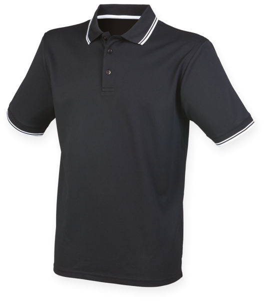 100% Polyester Coolplus® Mikro-Piqué-Qualität. Knopfleiste mit 2 Ton-in-Ton Knöpfen. Schrägkragen und Bündchen in Flachstrick. Gesäumte Seitenschlitze. Pflegeleicht.