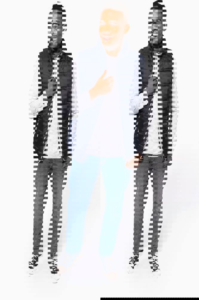 Außenmaterial: 100 % Ripstop-Polyester mit Acryl-Beschichtung. Polyester-Innenfutter. 210T Polyester-Futter. Moderner und bequemer Schnitt. 2 Reißverschluss-Außentaschen. 1 Innentasche mit Klettverschluss. Kontrastfarbener grauer Reißverschluss und kontrastfarbenes graues Zierband vorn, an den Taschen und am Saum.1 Reißverschluss an der Brusttasche links und 1 Reißverschluss am Saum zur Veredelung.