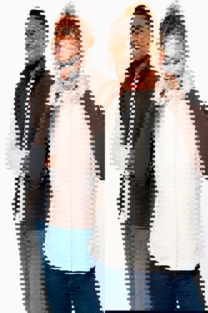 100% Antipilling Polyester-Microfleece. 2 Seitentaschen mit Flachnähten. Durchgehender Qualitäts-Reißverschluss.
