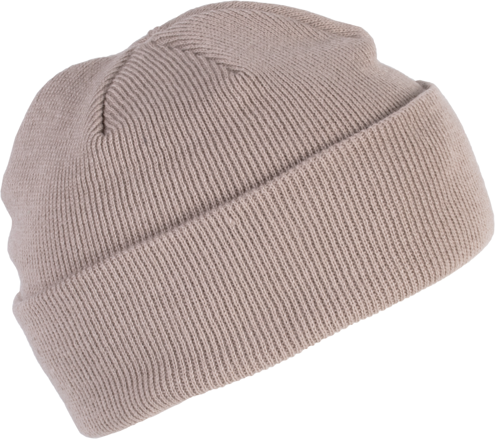 Gestrickte Mütze aus 100% Acryl. Kugelform.