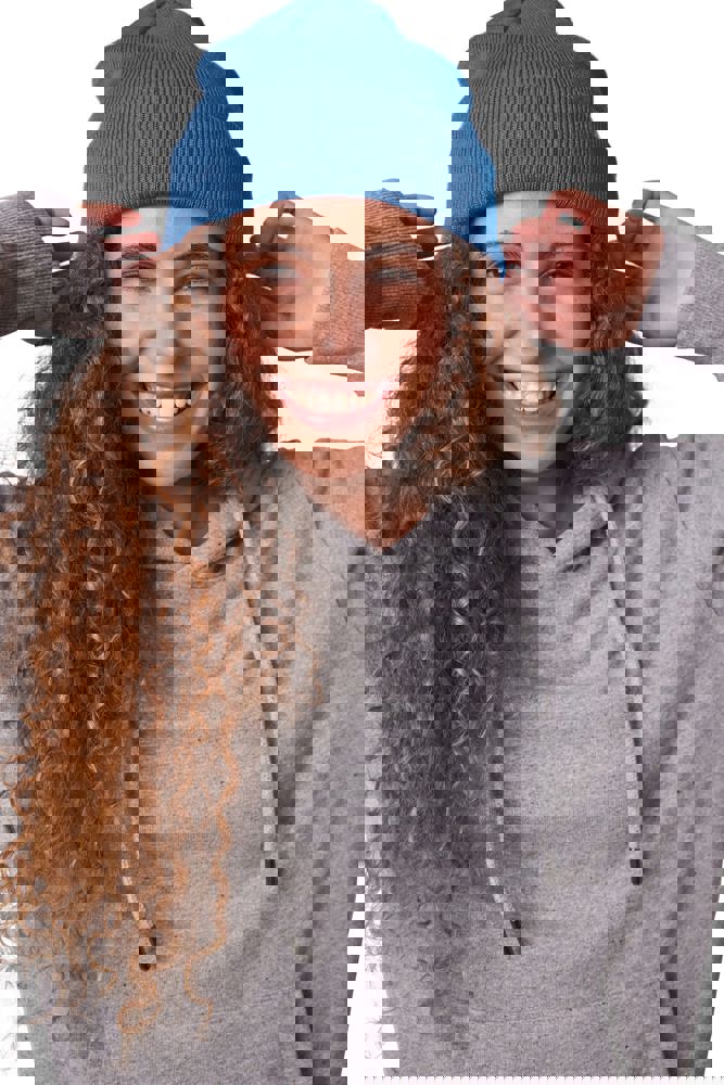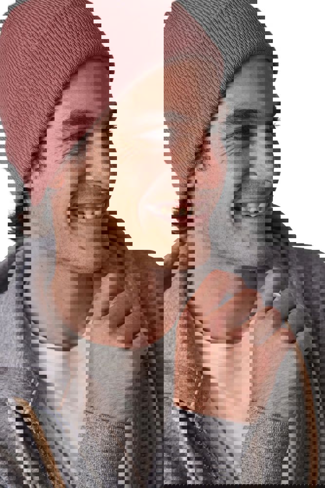 Gestrickte Mütze aus 100% Acryl. Kugelform. mehr