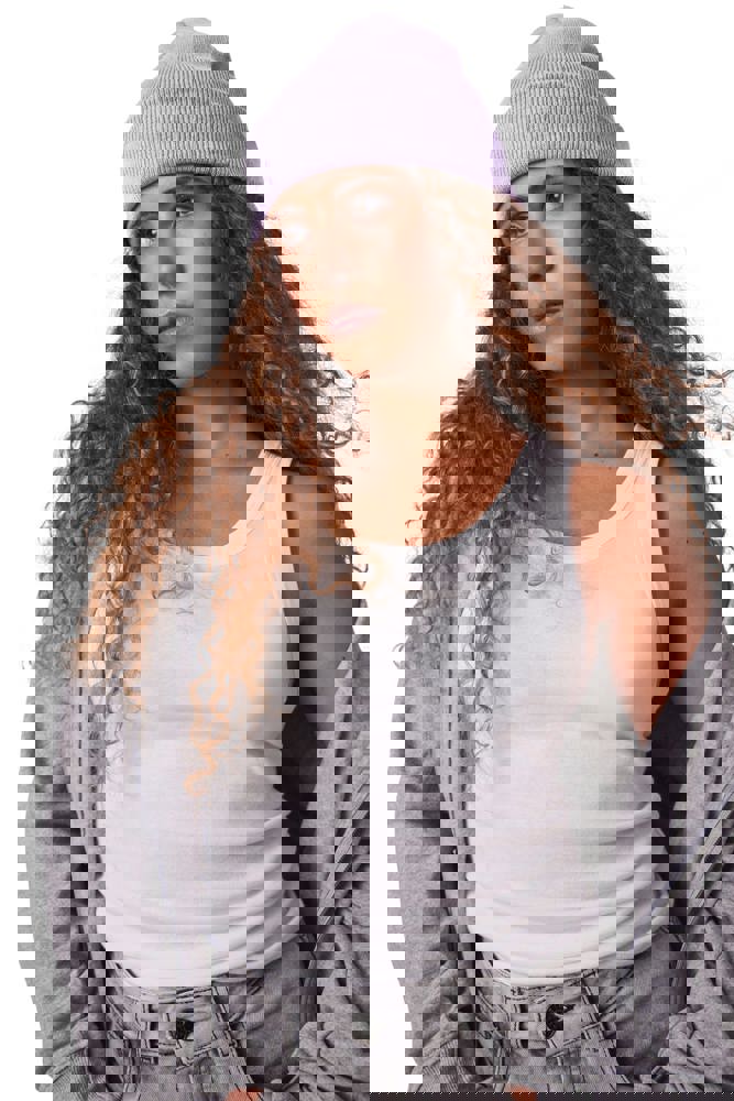 Gestrickte Mütze aus 100% Acryl. Kugelform.