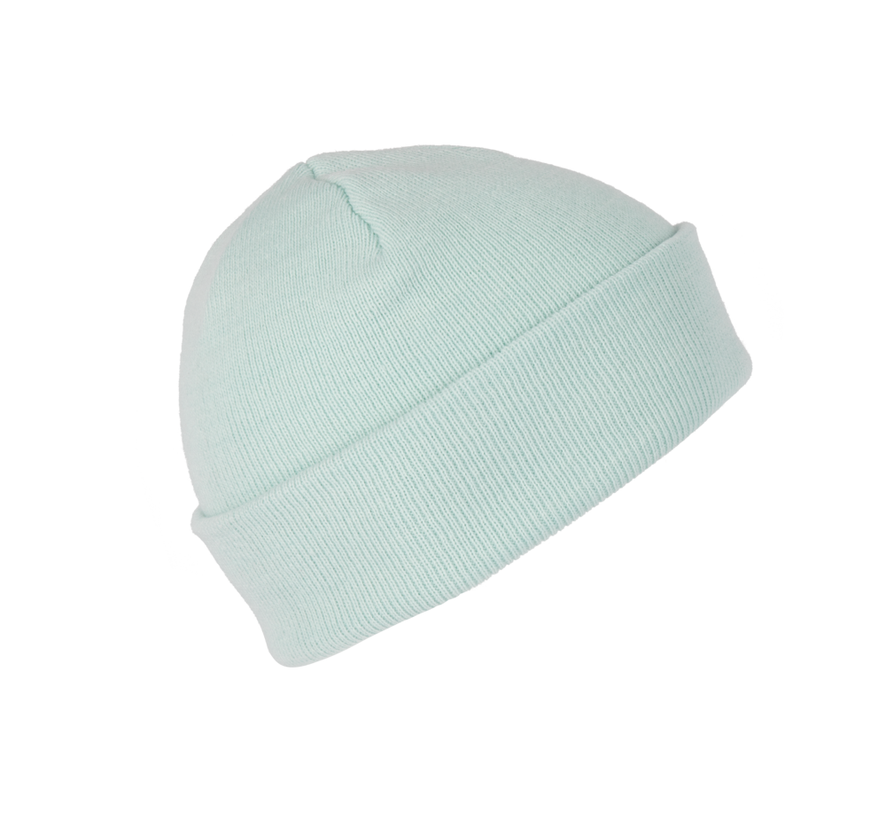 Gestrickte Mütze aus 100% Acryl. Kugelform.