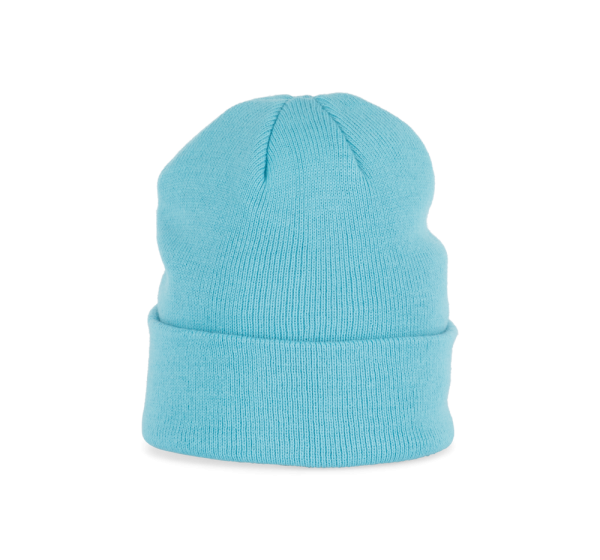 Gestrickte Mütze aus 100% Acryl. Kugelform.