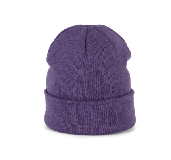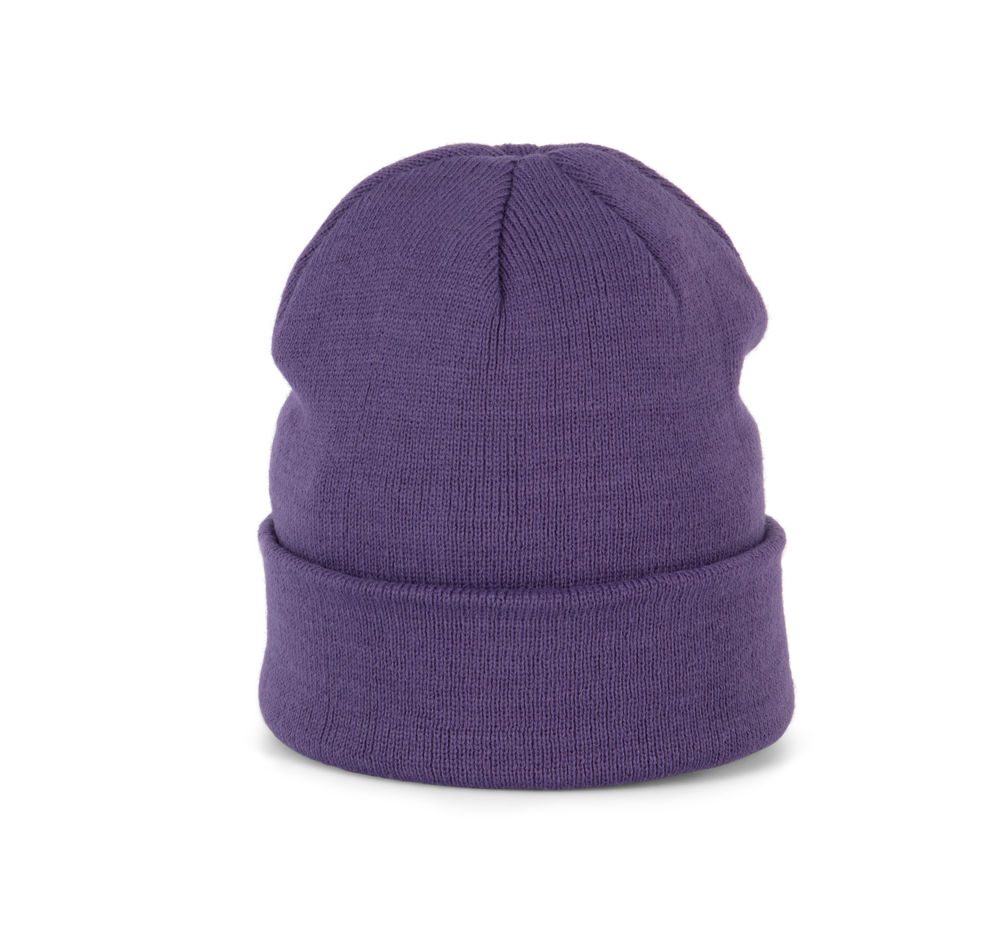 Gestrickte Mütze aus 100% Acryl. Kugelform.