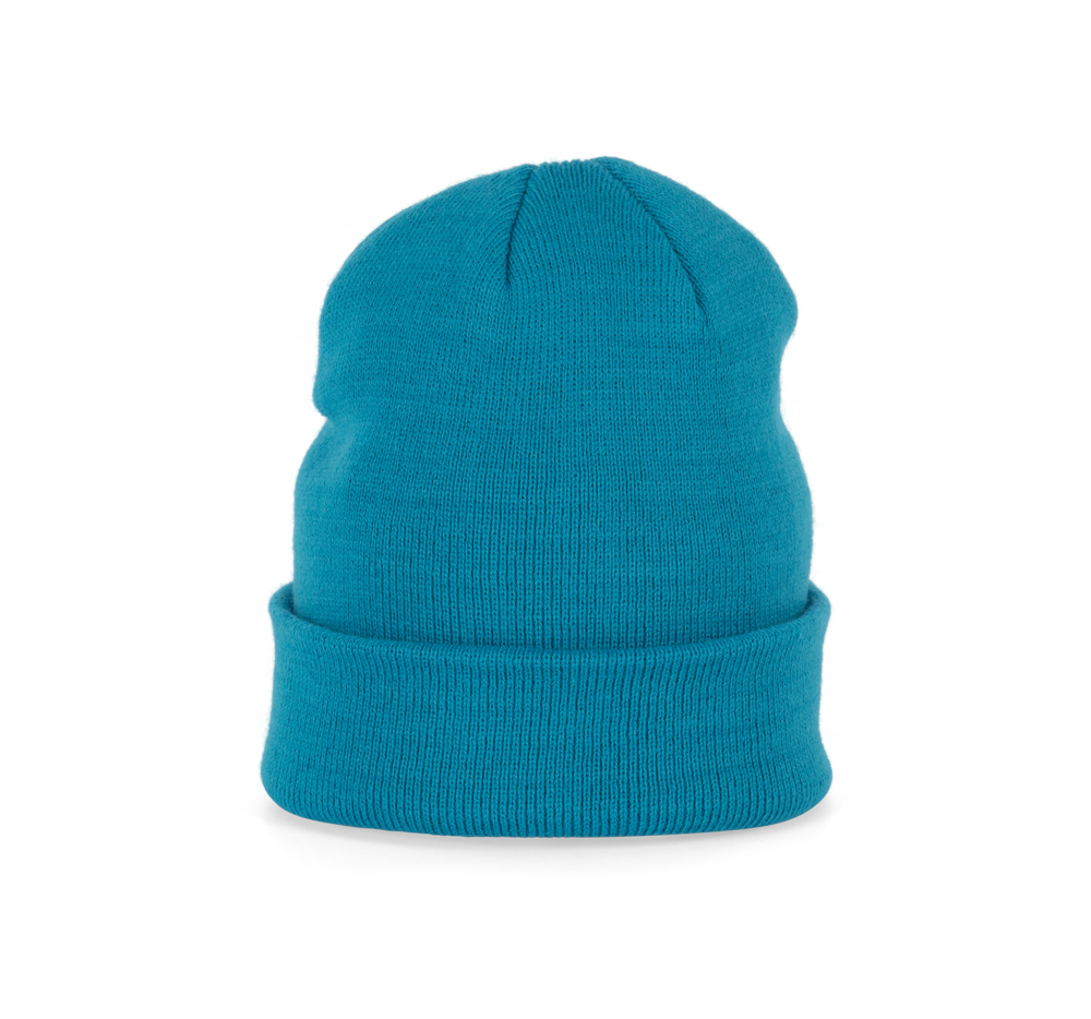 Gestrickte Mütze aus 100% Acryl. Kugelform.