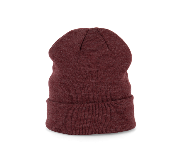Gestrickte Mütze aus 100% Acryl. Kugelform.