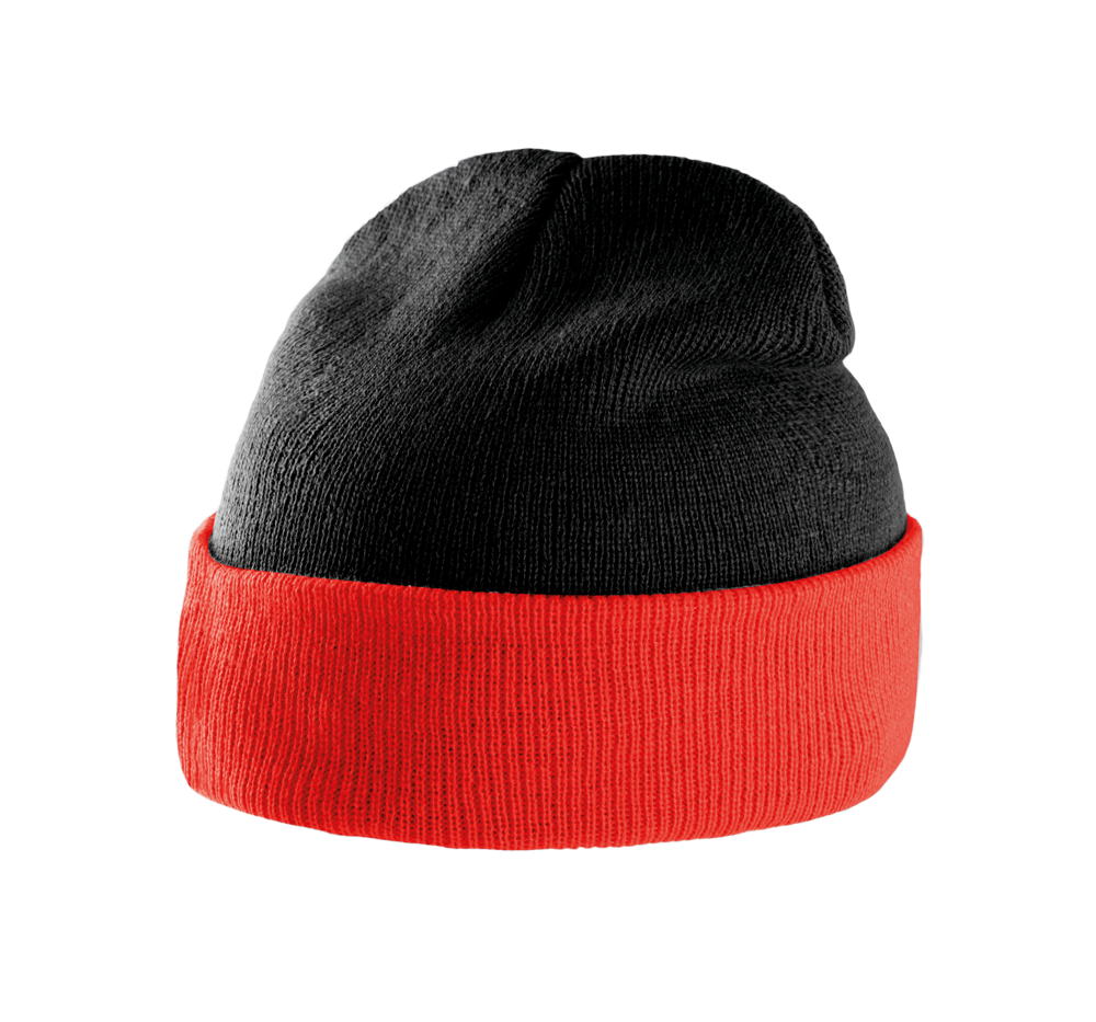 100% Acryl. Modische Mütze mit gestricktem Umschlag in Kontrastfarbe.