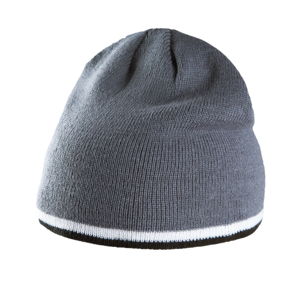 100% Acryl. Strickmütze mit Kontraststreifen am Rand.