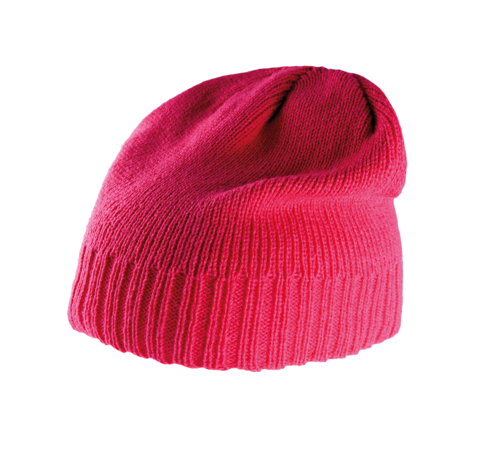 100% Acryl. Strickmütze. Rand in grobem Rippstrick.