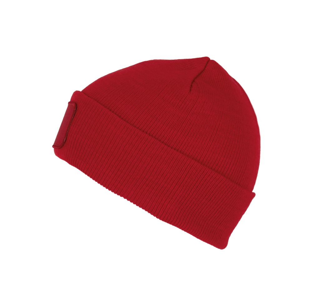 50 % Polyester, 50 % Acryl. Strickmütze mit Umschlag aus Acryl und Polyester. Baumwoll-Patch auf der Vorderseite für eine einfache Veredelung. Markenetikett zum Abreißen.