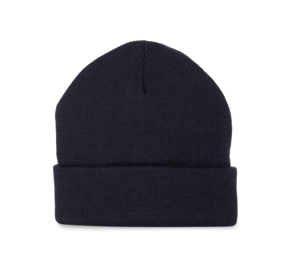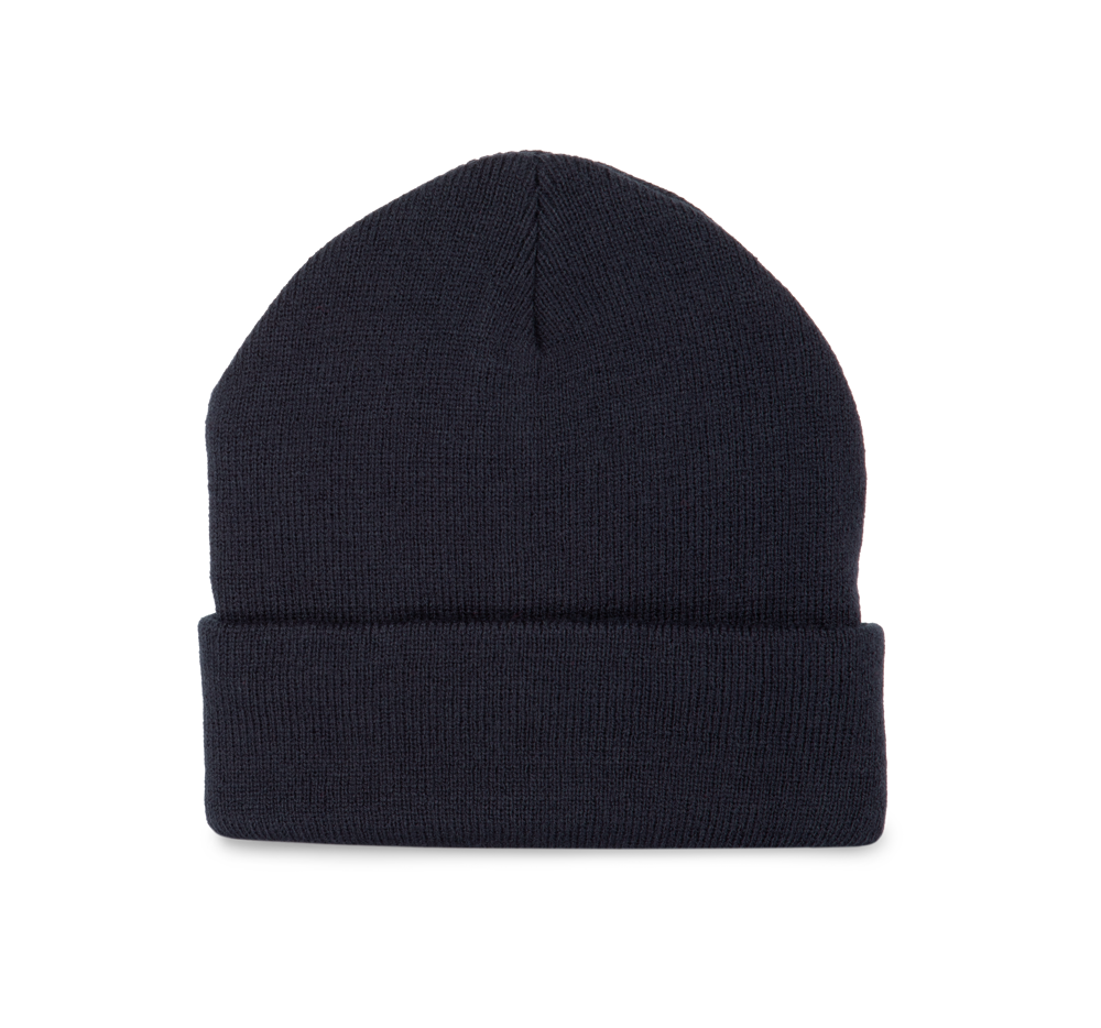 50 % Polyester, 50 % Acryl. Strickmütze mit Umschlag aus Acryl und recyceltem Polyester. Markenetikett zum Abreißen.