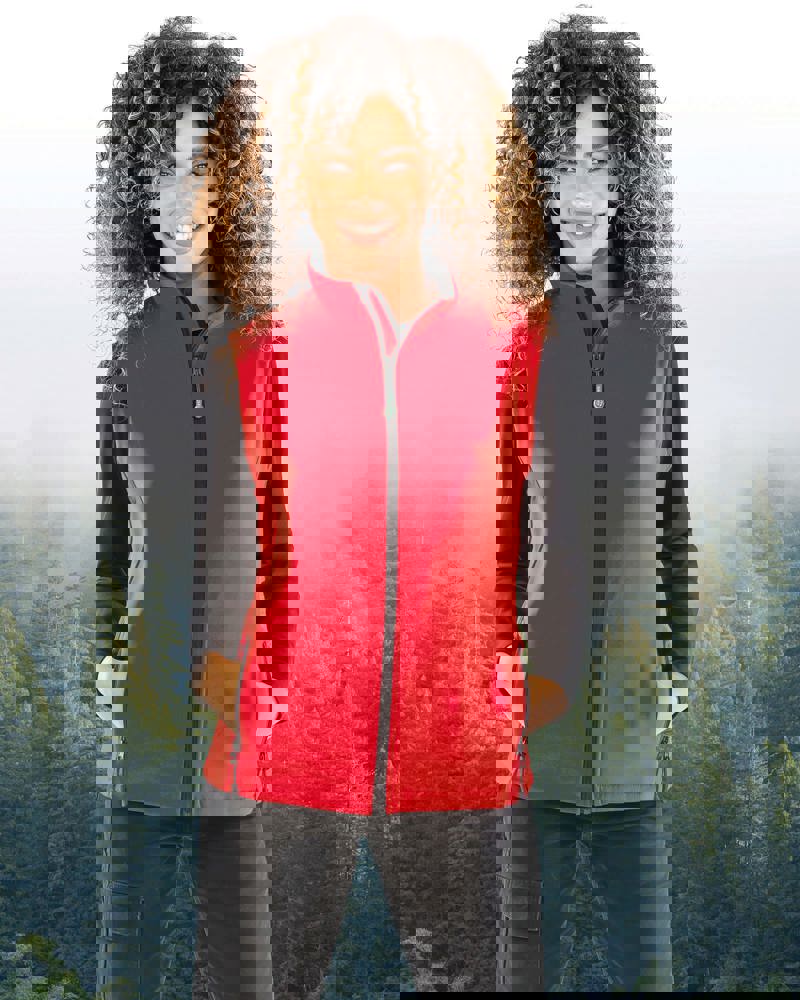2-lagige Softshell-Weste, dehnbares Gewebe, strukturiert. Außen: 100% Polyester, Innen: 100% Microfleece. Atmungsaktiv, wind- und wasserdicht. Reißverschluss YKK mit Kinnschutz. Vordertaschen mit Reißverschluss. Dekorative Ziernähte. Neutrales Etikett. Tailliert.