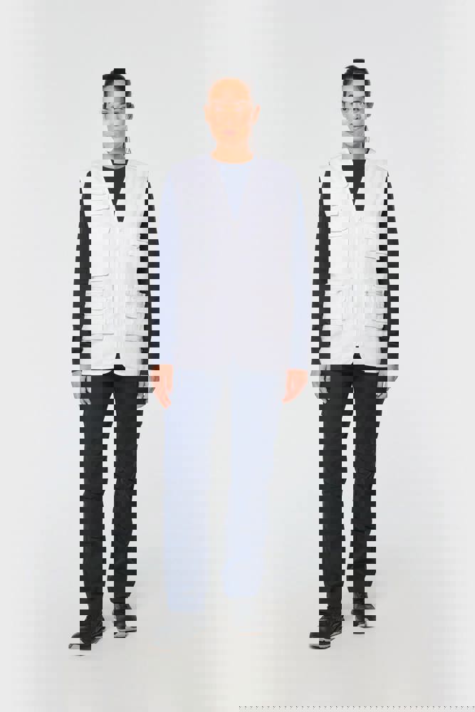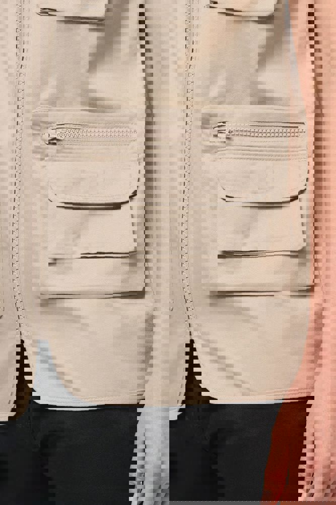 Außenseite: 65 % Polyester/35 % Baumwolle. Futter: 100 % Polyester. Gerader Schnitt. Netzfutter auf der Hälfte des Rückens. 2 doppelte aufgesetzt Taschen mit Falte auf der Vorderseite, davon eine mit Klappe und eine mit farblich abgestimmtem Kunststoff-Reißverschluss sowie 3 aufgesetzte Brusttaschen mit Falte und Klappe sowie Klettverschlussband in unterschiedlichen Größen. Farblich abgestimmter Kunststoff-Reißverschluss. Befestigungshaken auf der Krageninnenseite. Leicht verlängerter Rücken. Farblich abgestimmtes Schrägband an Ärmelbündchen und Saum. Namensetikett auf der Innenseite. Markenetikett zum Abreißen.