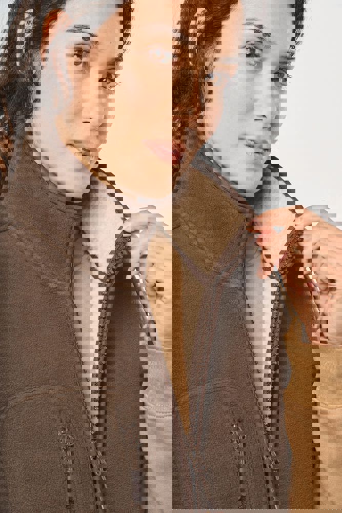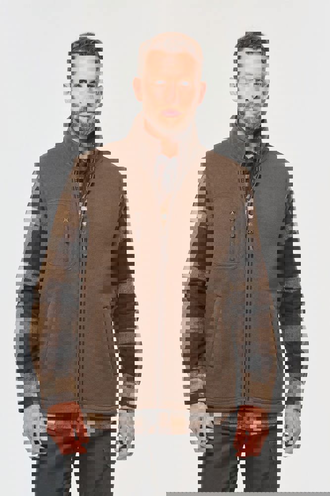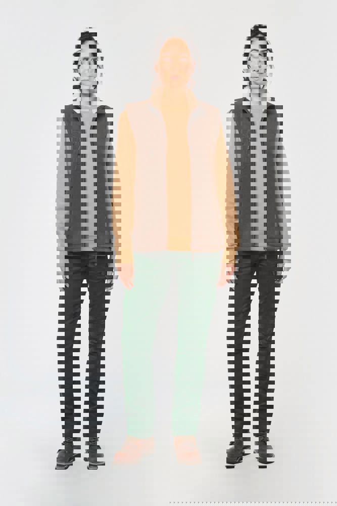 100 % Polyester. Verbundgewebe Mikrofleece und Sherpa. Gerader Schnitt. 2 paspelierte Taschen auf der Vorderseite mit Reißverschlussanhänger. 1 abgerundete Brusttasche auf der rechten Seite, mit doppelter Ton-in-Ton-Ziernaht. Reißverschluss mit Reißverschlussanhänger. Mit Sherpa gefütterte Krageninnenseite und Aufhängeschlaufe. Überdecknaht an den Ärmellöchern und am unteren Saum. Abtrennbares Marken-Label.