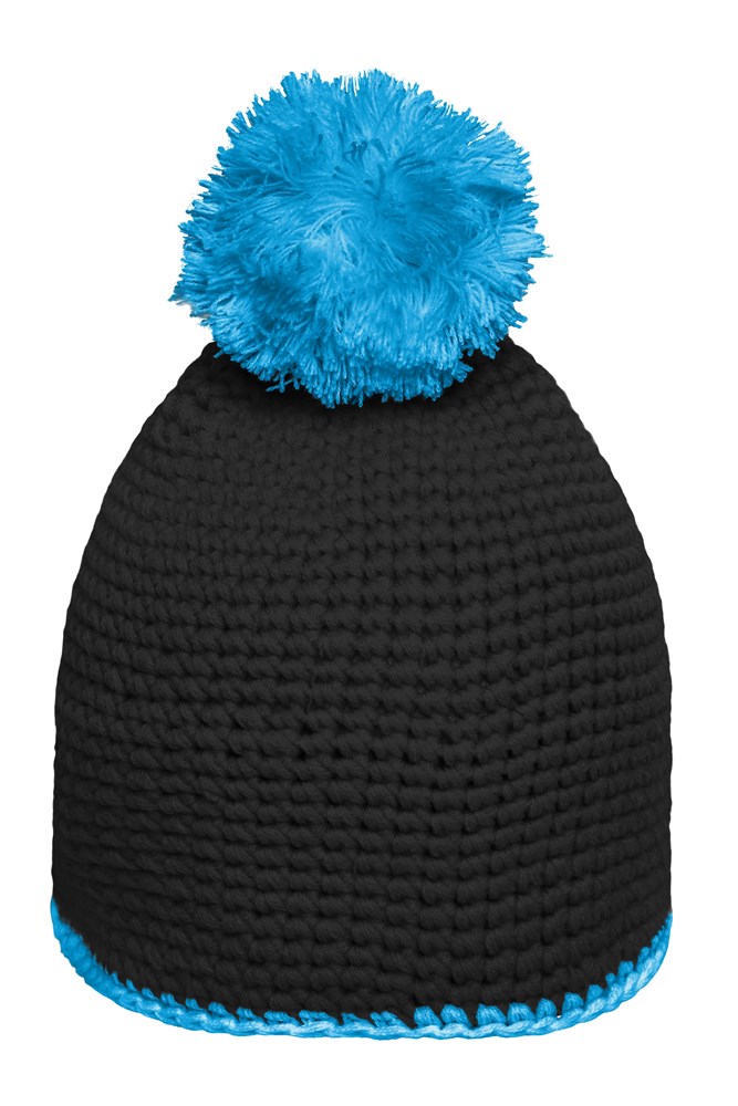 Pompon Hat with Contrast Stripe