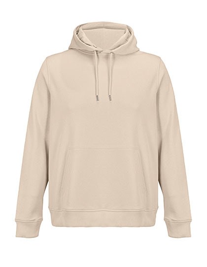 Außenmaterial: gekämmte Bio-Baumwolle in Umstellung | Recycelter Polyester | Geschnitten und genäht | Eingesetzte Ärmel | 2x2-Ripp an Bündchen und Saum | Kängurutasche | Jersey-Halbmond und Nackenband im Kragen | Kapuze mit Jersey-Futter | Kordelzug mit Metallösen und Stoppern | Ungebürstete Innenseite
