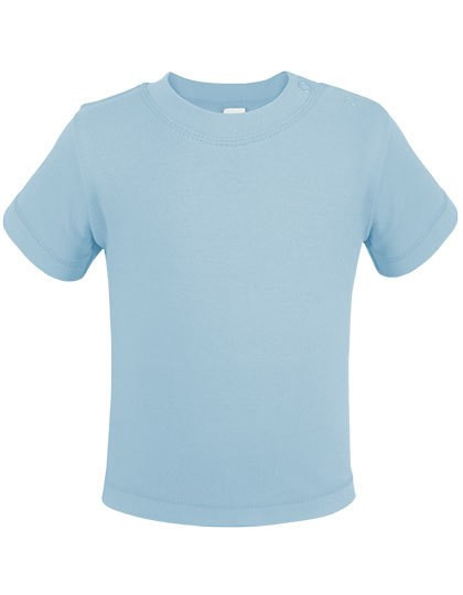 Sehr gute Interlock-Qualität | Unbedruckt waschbar bis 60 °C | Weiche und elastische Interlock-Verarbeitung | T-Shirt mit zwei nickelfreien Qualitätsdruckknöpfen (YKK) auf der Schulter in der gleichen Farbe | Reaktiv gefärbt | Kein Markenetikett im Nacken | Seitennähte | Bio-Baumwolle und soziale Standards, Interlock
