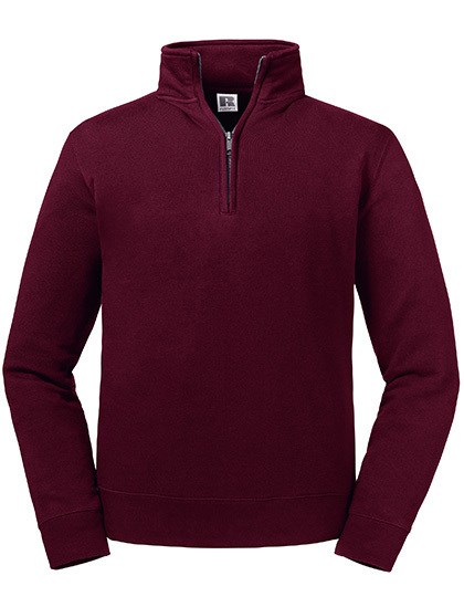 Zeitgemäßer Schnitt und modernes Design | Feine 100%ige Baumwolloberfläche | Nackenband in Fischgrät-Optik | Schlankere Schulterpartie und Ärmel | Saum und Bündchen weiter geschnitten und mit Elasthan | Decknähte an Armausschnitten, Bündchen und Saum | Seitennähte für optimale Passform | Angerauter Fleece-Stoff | Verdeckter Reißverschluss für vollflächige Veredelung | Abgesetzter Kadettkragen | YKK 1/4-Reissverschluss