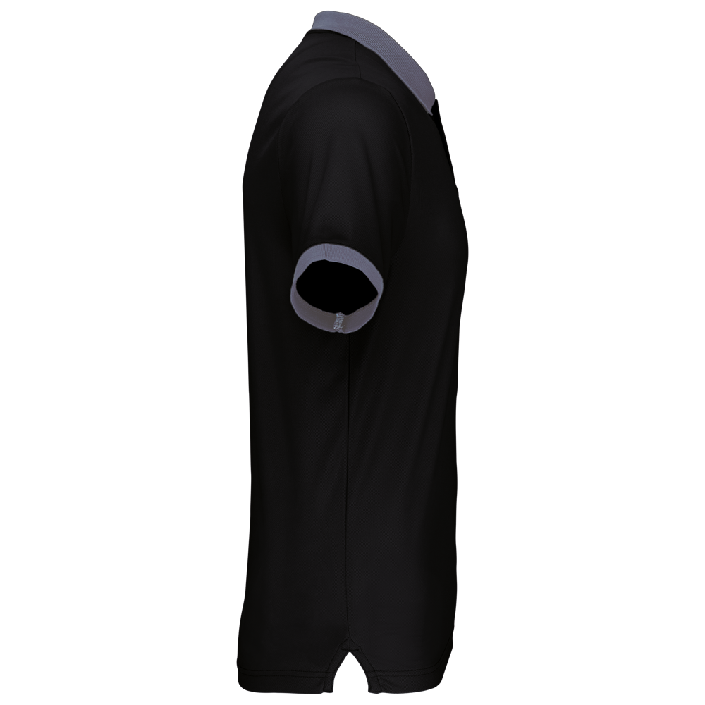 100 % Cool Plus® Polyesterpiqué. Gerader Schnitt. Kontrastfarbenes Rippstrickbündchen an Kragen und Ärmelsaum. Knopfleiste mit 3 Knöpfen (je nach Modell kontrastierend oder einfarbig). Seitliche Schlitze.