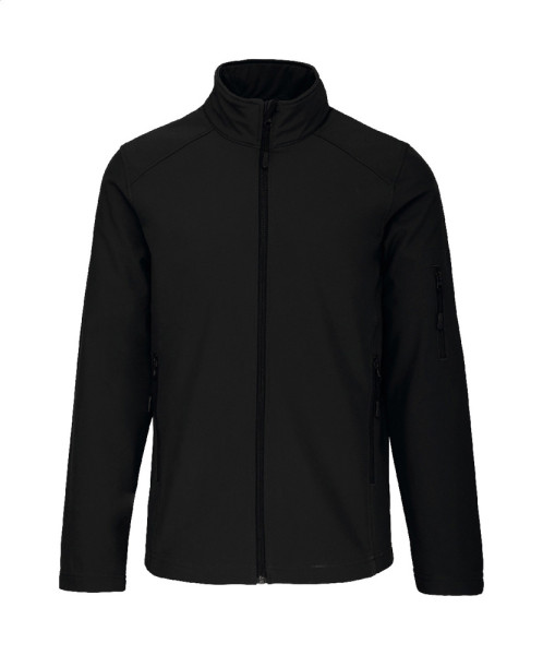 Softshell-Jacke mit Reißverschluss – dreilagig, atmungsaktiv, wind- und wasserdicht – mit Reißverschlusstaschen an Ärmeln und Seiten. Mit atmungsaktiver Zwischenschicht und innenliegendem Micro-Polar-Fleece. 95 % Polyester, 5 % Elasthan, 300 g/m². Marke: Kariban.