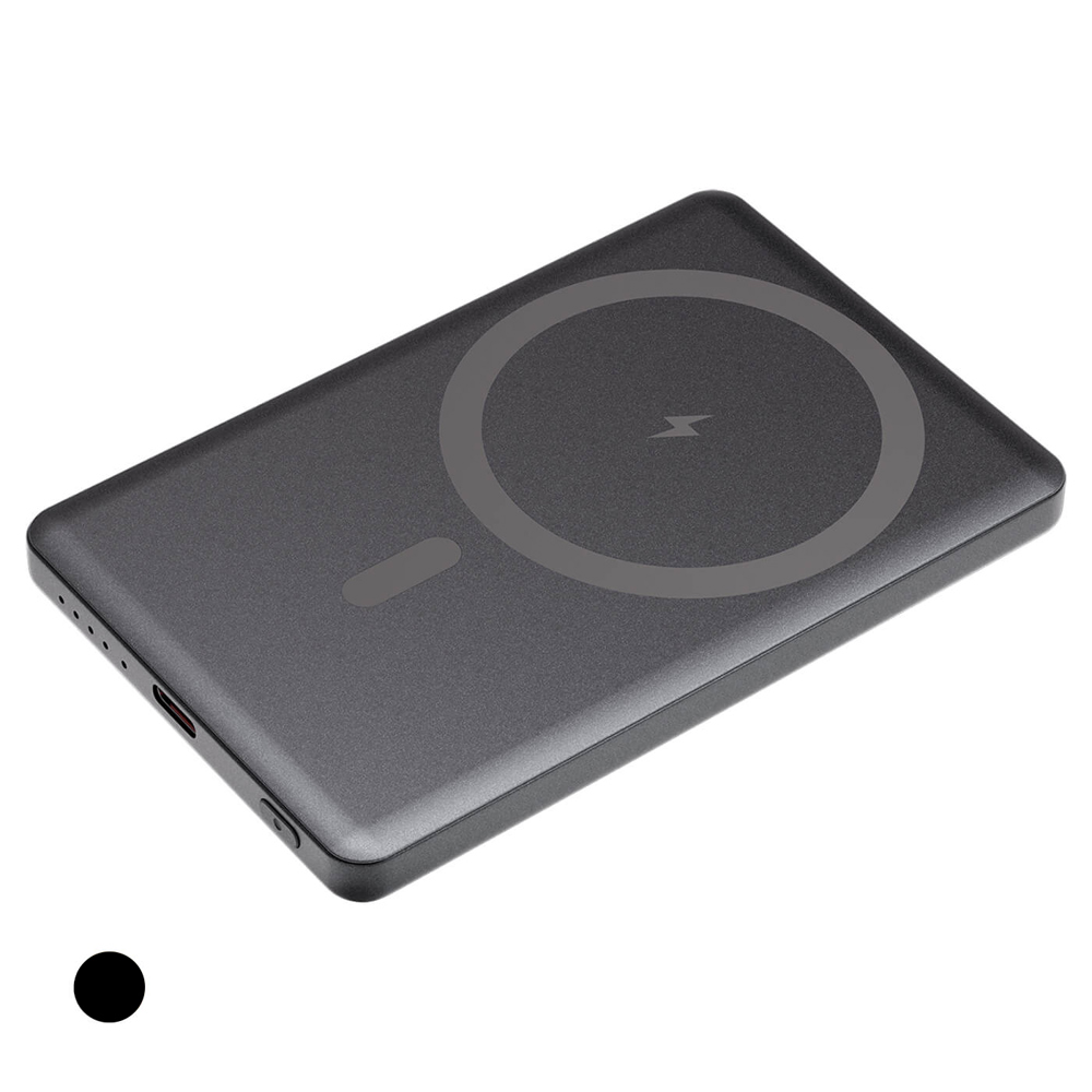 5.000 mAh MagSafe Powerbank mit Power Delivery-Funktion und kabellosem Ladegerät mit einem Gehäuse aus recyceltem Aluminium. Kompatibel mit allen Geräten wie Smartphones, Tablets und kleinen Laptops, bietet es vielseitiges und sicheres Laden, egal wo Sie sind.