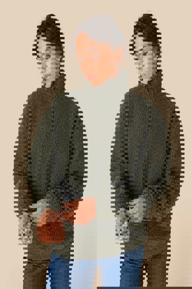 SP403 - Unisex-Sweatshirt mit 1/4-Reißverschluss und überschnittenen Schultern aus Sherpa-Material