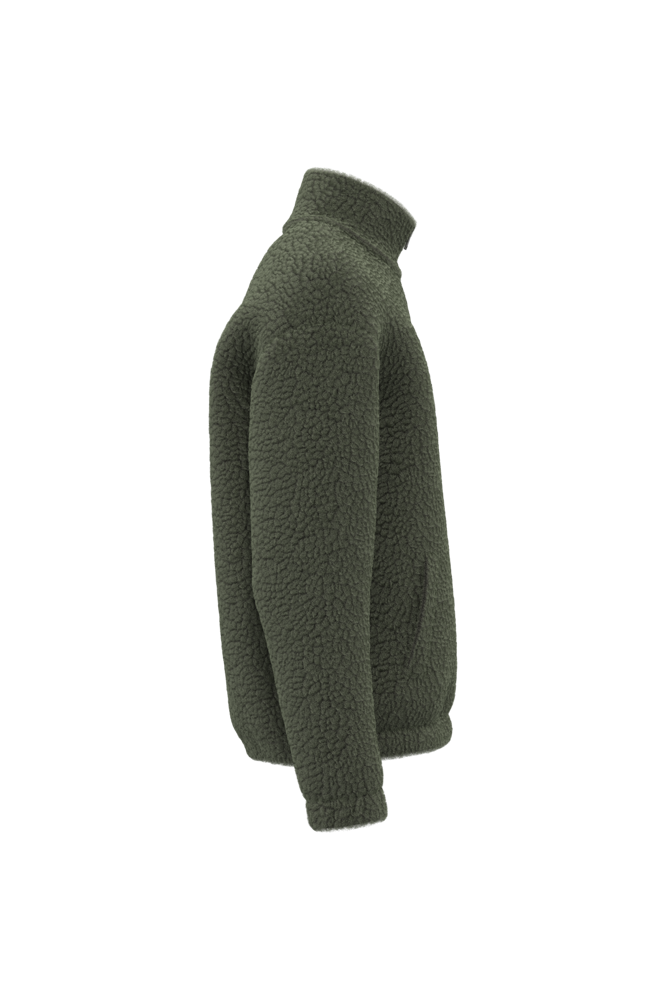 100 % Polyester. Reguläre Passform mit überschnittener Schulterpartie. Sherpa-Material mit Hauptfutter aus Jersey und Ärmelfutter aus Taft für ein einfaches Anziehen. Ein mit Hauptmaterial gefütterter Stehkragen mit Reißverschluss und einem Ton-in-Ton-Metallschieber. Krageninnenseite mit Nackenband mit tonalem Fischgrätenmuster. Elastische Ärmelbündchen und Saum. Zwei paspelierte Taschen auf der Vorderseite. Reißverschluss zur individuellen Veredelung am unteren Rand des Kleidungsstücks.