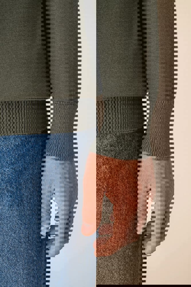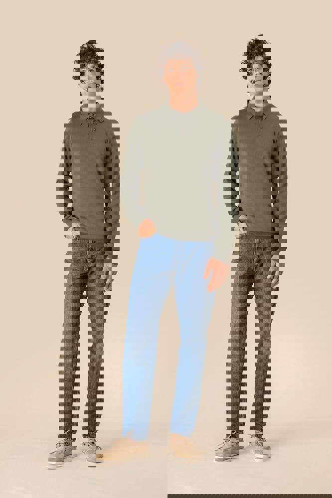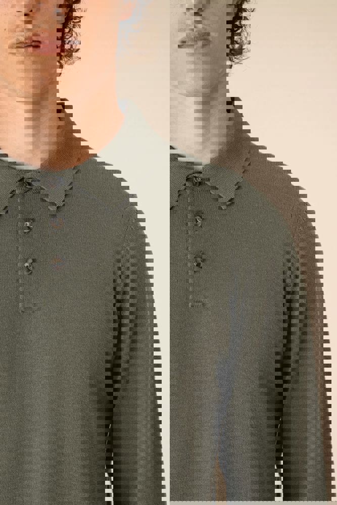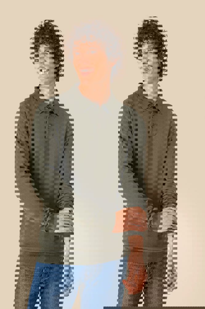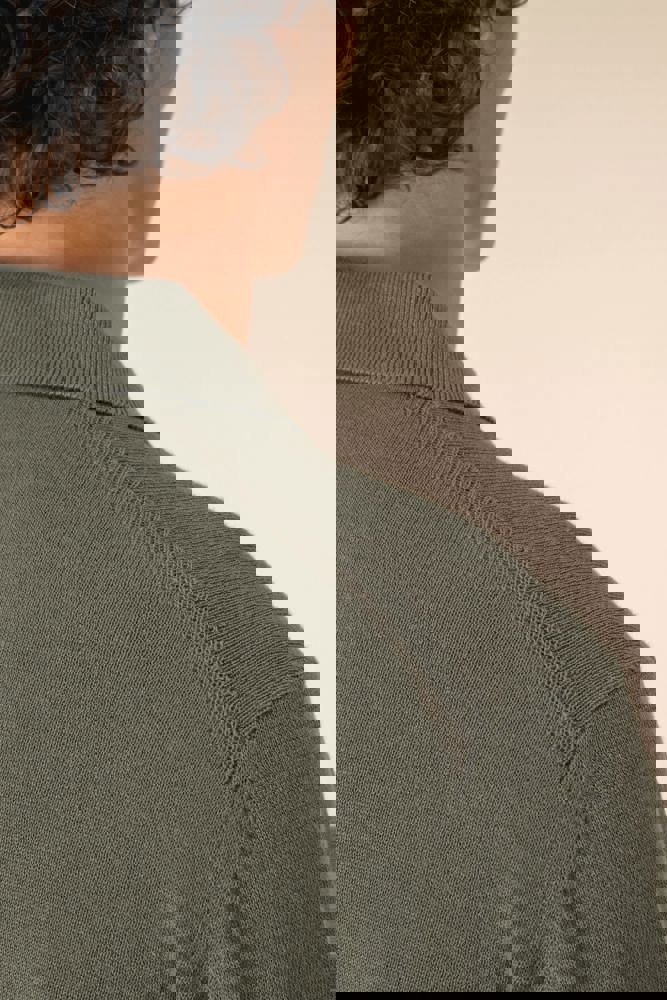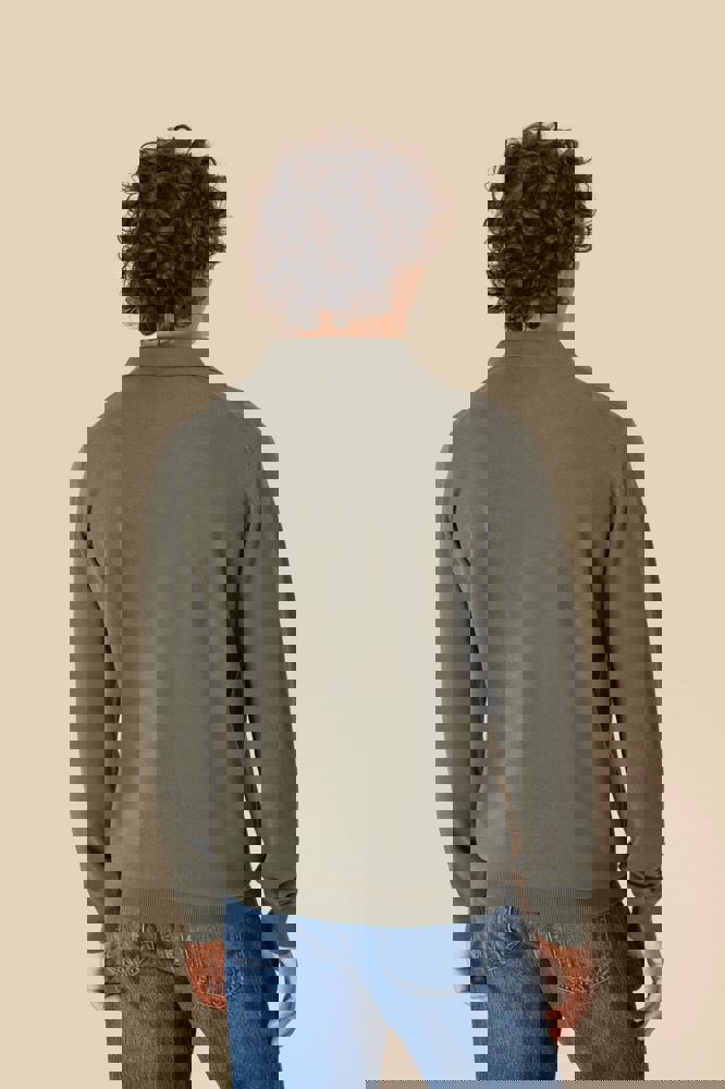 100 % Bio-Baumwolle. Gekämmte Baumwolle. 12 gg Strick. Gerader Schnitt. Knopfleiste mit 3 Knöpfen. Farblich abgesetzte Knöpfe aus recyceltem Kunststoff mit Horn-Optik Kragen, Ärmelbündchen und unterer Saum mit Strickbündchen 1 x 1. Innenseite des Kragens mit einem Nackenband aus tonalem Hauptmaterial. „Fully Fashion“-Strick. Anti-Pilling-Behandlung. Artikelgewicht in Größe L: 270 g.