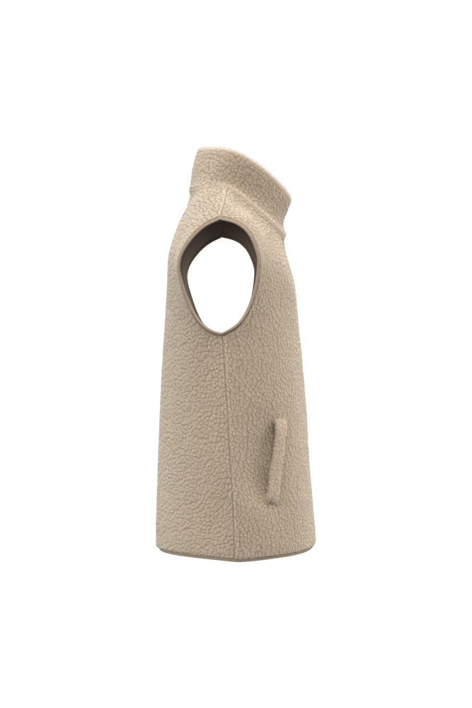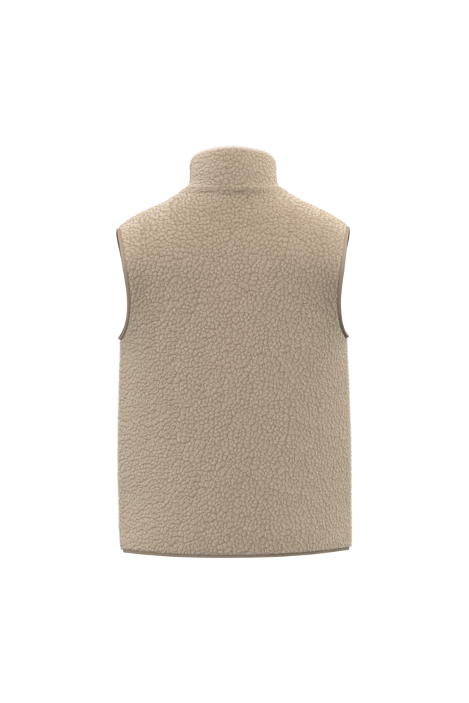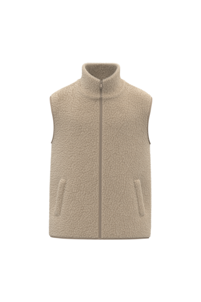100 % Polyester. Reguläre Passform. Material aus Sherpa mit Hauptfutter aus Jersey. Doppelter Stehkragen aus Hauptmaterial. Krageninnenseite mit Nackenband mit tonalem Fischgrätenmuster. Kunststoffreißverschluss mit Ton-in-Ton-Metallschieber. Zwei paspelierte Taschen auf der Vorderseite. Ton-in-Ton-Schrägbandabschlüsse an den Armausschnitten und am unteren Rand des Kleidungsstücks. Reißverschluss zur individuellen Veredelung am unteren Rand des Kleidungsstücks.