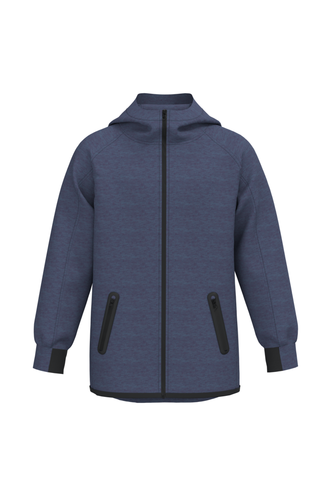94% Polyester / 6% Elasthan (79% Polyester / 15% Viskose / 6% Elasthan bei der melierten Farbe). Ultrabequemes Material. Gerader Schnitt. Reißverschluss. 2 Vordertaschen mit Reißverschluss und thermogeschweißter Verarbeitung. Kapuze mit Jersey gefüttert (65% Polyester / 35% Viskose). Ärmelabschlüsse mit kontrastierendem Gummizug und Saum mit kontrastierendem Schrägband. Kontrastierender Verschluss. Kontrastierende Teile in Black bei allen Farben und Dark Grey bei Ash Heather.
