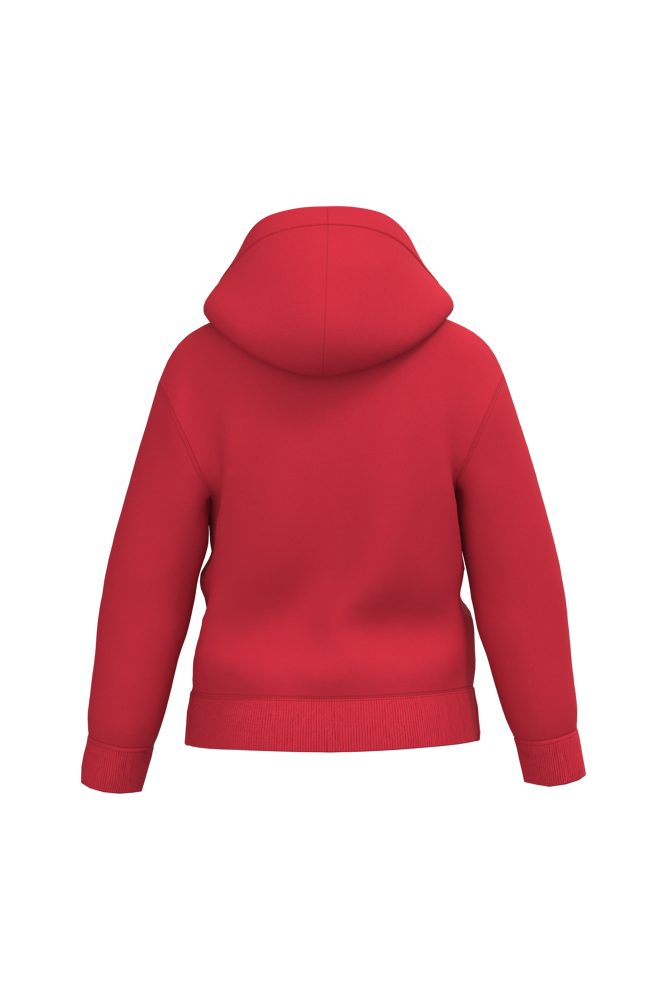 50% ringgesponnene Baumwolle / 50% recyceltes Post-Consumer-Polyester. Gebürstetes Molton. Gerader Schnitt. Geschnitten und genäht. Enzymwäsche. Schlauchförmige 2x1-Rippenbündchen für einen besseren Abschluss am Kragen, an den Ärmelenden und am Saum. Doppelte Ziernähte an Schultern, Armlöchern, unterem Saum und Ärmelabschluss. Kängurutaschen. Kapuze mit Jersey gefüttert. Ton-in-Ton-Jerseystreifen an der Innenseite des Kragens. Kein Markenetikett am Halsausschnitt, nur Größenangabe, zur einfacheren Veredelung.