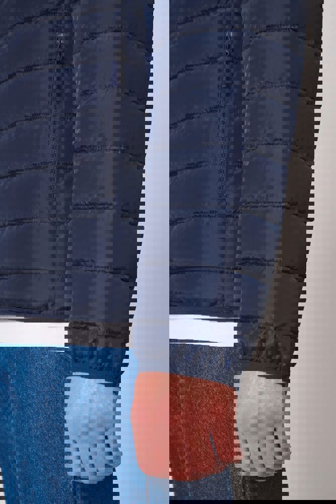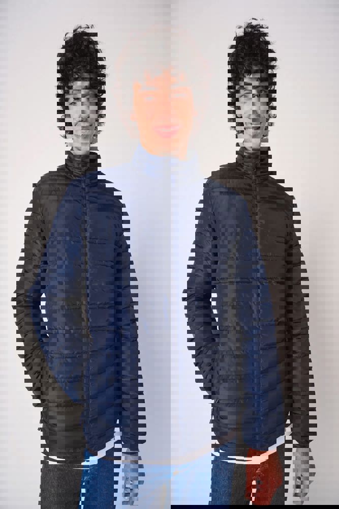 100 % Polyester 290T. Wattierung: 100 % Polyester. Futter: 100 % Polyester 290T Ton-in-Ton. Gerader Schnitt. Stehkragen. Zwei Seitentaschen mit 290T-Futter, mit Ton-in-Ton-Nylon-Reißverschlüssen und Zipper. Zwei Innentaschen. Ton-in-Ton-Nylonreißverschluss mit Kinnschutz und Zipper. Horizontale Steppung. Breitere Steppbahnen (11 cm vorne, 14,5 cm hinten) für optimale Personalisierung. Elastische Einfassungen an Ärmel- und Saumabschlüssen Ton-in-Ton. Aufhänger innen am Kragen. Injizierte Wattierung: das Gewicht kann je nach Bereich des Kleidungsstücks variieren. Das Gesamtgewicht ist ein Richtwert. Komprimierbar in seinem Transportbeutel. Abreißbares Markenetikett.