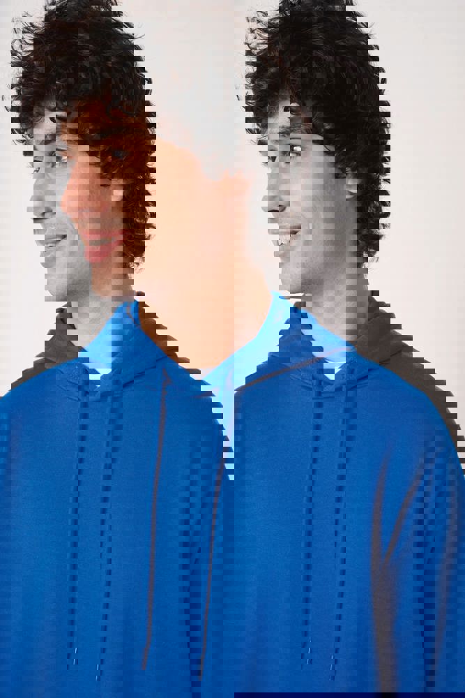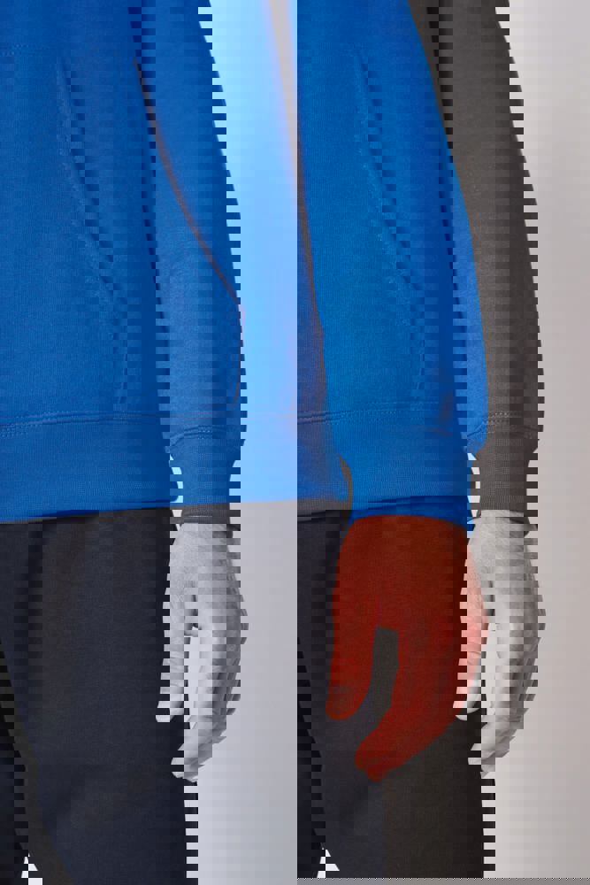 50 % Baumwolle / 50 % Polyester. Aufgerauter Schlauch-Fleece. Gerader Schnitt. Ärmel- und Saumabschlüsse mit 1x1-Rippstrick und Doppelnähten. Kängurutasche. Kapuze mit Jersey-Futter und runder Kordel Ton-in-Ton. Abreißbares Markenetikett.