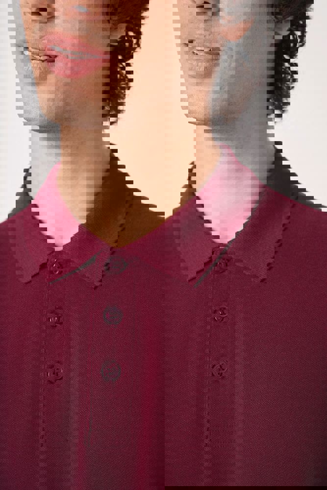 Uni-Farben: 100 % Baumwolle. Farbe Ideal Oxford Grey: 90 % Baumwolle / 10 % Viskose. Piqué-Gewebe. Gerader Schnitt. Kragen mit 1x1-Rippstrick. Knopfleiste mit 3 Ton-in-Ton-Knöpfen. Nackenband Ton-in-Ton. Seitenschlitze. Doppelnähte an Ärmel- und Saumabschlüssen. Abreißbares Markenetikett.