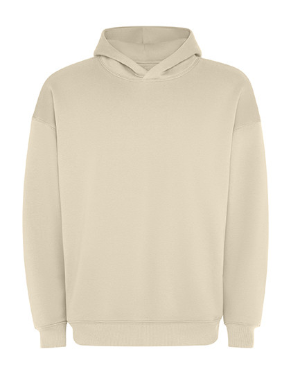 Oversize-Unisex-Sweatshirt mit Kapuze und Futter aus dem gleichen Stoff | Kragen mit Coverstich | 2 seitliche Taschen | 2x1-Ripp an Bündchen und Saum