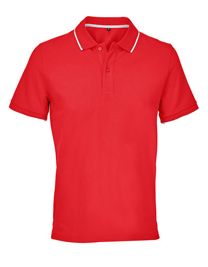 Piqué | Gekämmte, ringgesponnene Baumwolle | Gerippter Kragen und Manschetten mit kontrastierendem Streifen | Nacken- und Schulterband in der gleichen Farbe wie der Streifen | 2-Ton-in-Ton-Knopfleiste | Bequeme Passform | Geschnitten und genäht | Verstärkte und abgesetzte Seitenschlitze | Ersatzknopf an der inneren Seitennaht | Aufkleber abreißen