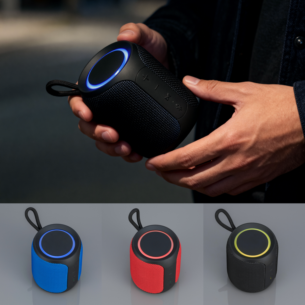 Ein kompakter und tragbarer Bluetooth-Lautsprecher, entwickelt für hochwertigen Klang überall. Bietet klaren, kraftvollen Sound mit bis zu 8 Stunden Wiedergabezeit und unterstützt TWS-Pairing für Stereo-Sound. Mit AUX-Eingang sowie einem stilvollen, robusten Gehäuse mit Stoffgitter und Trageschlaufe.