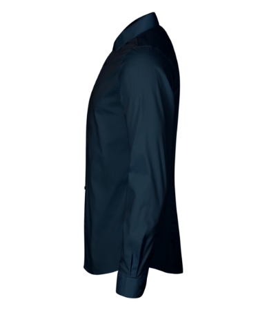 taillierter Schnitt mit Seitennähten, doppelter Sattel und Abnäher am Rücken, zweiteiliger Hemdkragen, Hemdkragen in den Spitzen verstärkt, Vorderseite mit einer Knopfleiste versäubert, lange Ärmel mit schrägen 2-Knopf-Manschetten, Perlmuttknöpfe in Materialfarbe (1 Ersatzknopf), geformter unterer Rand
