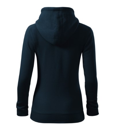 leicht taillierter Schnitt mit Seitennähten, durchgehender Krampenreißverschluss, Kapuze mit Innenfutter, durch Kordel zusammenziehbar, Innenseite des Kragens durch ein farbiges gewebtes Band versäubert, aufgesetzte Kängurutaschen, unterer Rand und Ärmelmanschetten aus 2:2 Rippstrick mit 5 % Elastanzugabe, Innenseite gekämmt