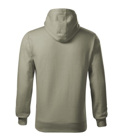 gerader Schnitt mit Seitennähten, Kapuze mit Innenfutter, durch Kordel zusammenziehbar, Innenseite des Kragens durch ein farbiges gewebtes Band versäubert, aufgesetzte Kängurutasche, unterer Rand und Ärmelmanschetten aus 2:2 Rippstrick mit 5 % Elastanzugabe, Innenseite gekämmt