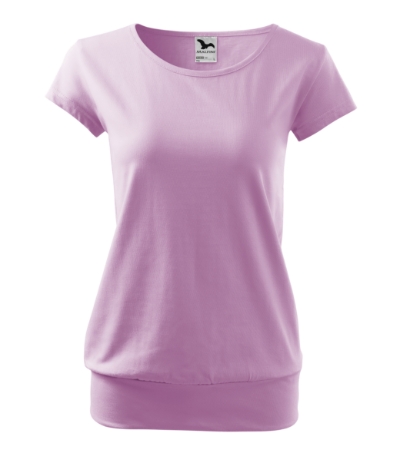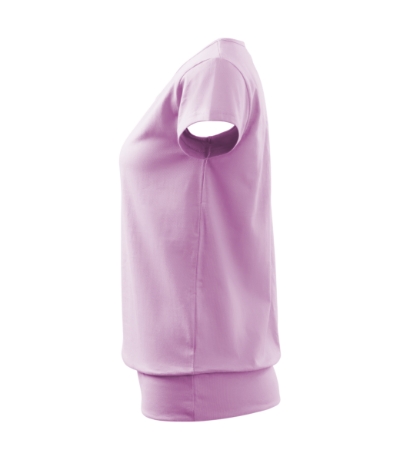fließender Schnitt mit Seitennähten, breiter unterer Saum in Materialfarbe, Kragen mit Materialfarbe eingesäumt, Schulternähte verstärkt mit einem Band, Ärmel der kürzeren Länge, Silikonbearbeitung, Farbe 39 wird nicht mehr produziert finden Sie beim Produkt X20 im OUTLET