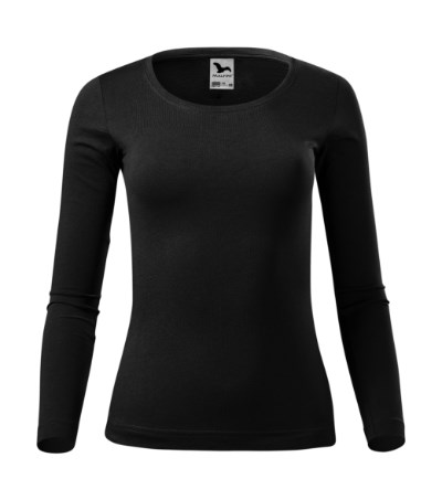 leicht taillierter Schnitt mit Seitennähten, runder vertiefter Halsausschnitt, schmal geformter Kragensaum aus 1:1 Rippstrick mit 5 % Elastanzugabe, Innenseite des Kragens durch ein Band in T-Shirt Material versäubert , Schulternähte verstärkt mit einem Band, lange Ärmel