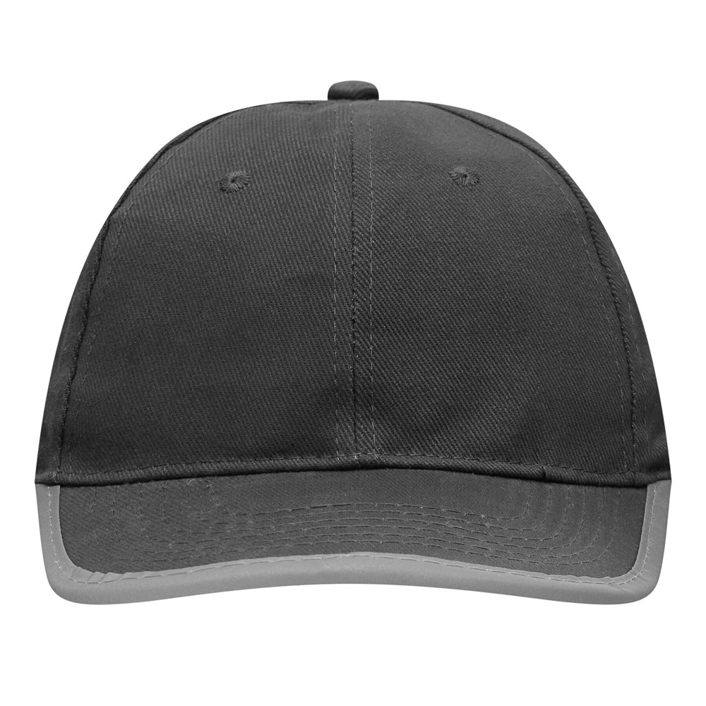 6-Panel-Baseball-Cap DETECTION: mit reflektierendem Band an Schirm und hinten auf dem Klettverschluss, verstärkte Frontsegmente, 6 gestickte Luftlöcher, Knopf, 100% Baumwolle (heavy-brushed)